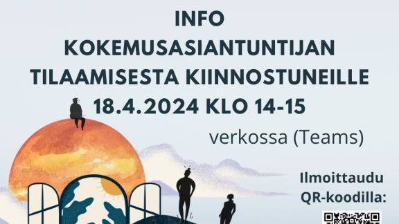 03.04.2024 Info kokemusasiantuntijoiden tilaamisesta kiinnostuneille 18.4. klo 14-15 (Teams) Kokemusasiantuntijat tuovat ymmärrystä mielenterveyshäiriöiden vaikutuksista elämän eri osa-alueille omakohtaisten kokemustensa pohjalta. Tule kuulemaan lisää kokemusasiantuntijoiden toiminnasta ja tilaamisesta... Lue uutinen