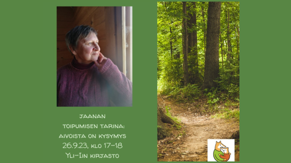 21.09.2023 Jaanan toipumisen tarina 26.9. klo 17-18 Tervetuloa kuulemaan Jaanan Toipumisen tarina kaksisuuntaisen mielialahäiriön ja aivovamman vaikutuksesta elämään. Sairaudesta huolimatta voi elää hyvää elämää ja mennä uteliaana kohti tulevaa. Paikka: Yli-Iin kirjasto,... Lue uutinen