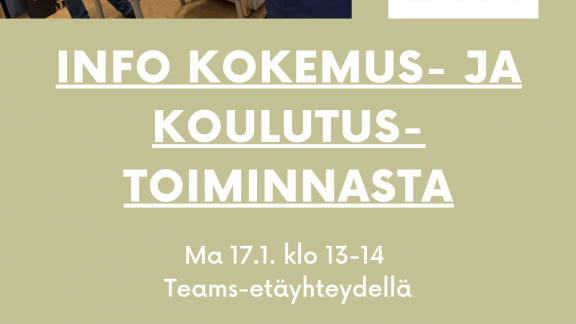 13.01.2022 Info koulutus- ja kokemustoiminnasta Tule kuulemaan ja kysymään Hyvän mielen talon kevätkauden 2022 koulutuksista ja kokemustoiminnasta. Paikalla myös kokemusasiantuntijoita kertomassa omasta toiminnastaan. Paikka: Teams etäyhteydellä. Lähetämme linkin... Lue uutinen