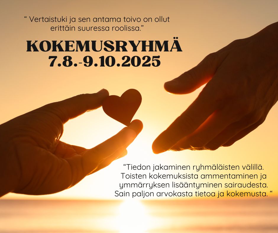 Kuvaus: Kokemusryhmä on kurssimuotoinen edukatiivinen vertaisryhmä. Perinteisestä vertaisryhmästä poiketen keskustelujen pääpaino on tiedon, ja erityisesti kokemustiedon jakamisessa.