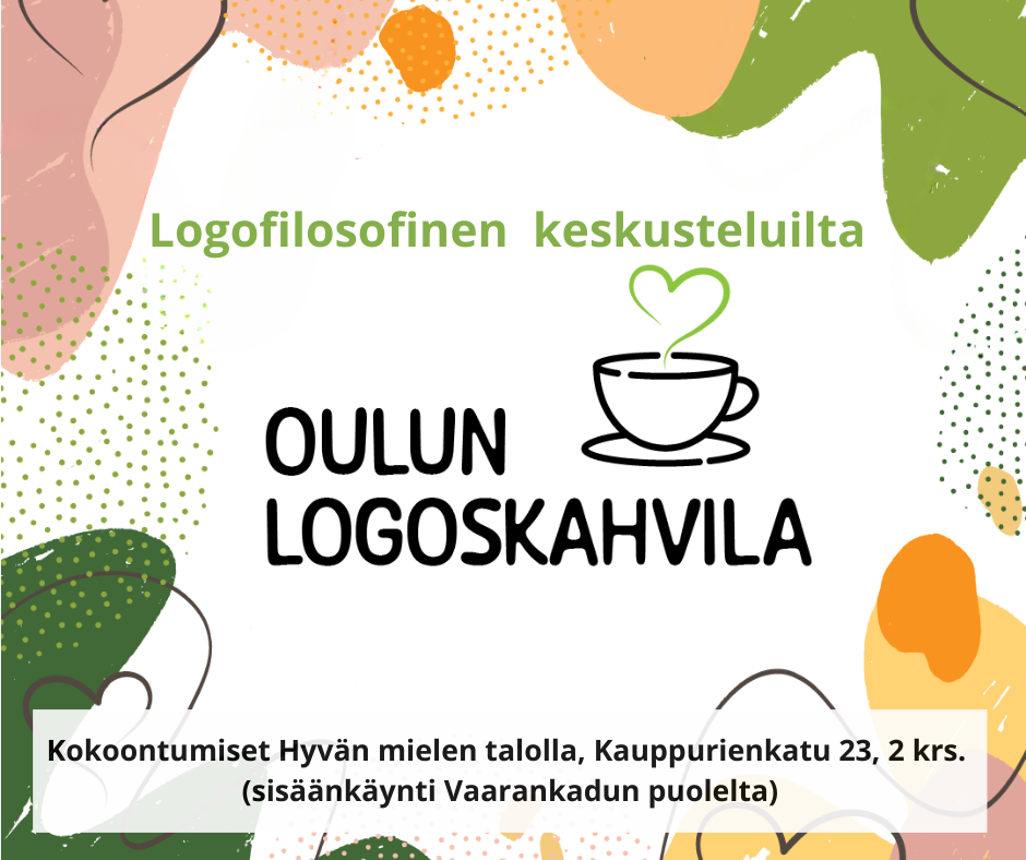Logoskahvilassa etsimme vastauksia logofilosofian viitekehyksestä ja dialogin voimasta. Keskustelutilaisuudet pohjautuvat Viktor Franklin logofilosofian aiheisiin. Logoskahvilat on tarkoitettu Sinulle, joka olet kiinnostunut ihmisenä olemisesta, oman elämän tarkoituksesta, elämänilosta vaikeidenkin aikojen keskellä.